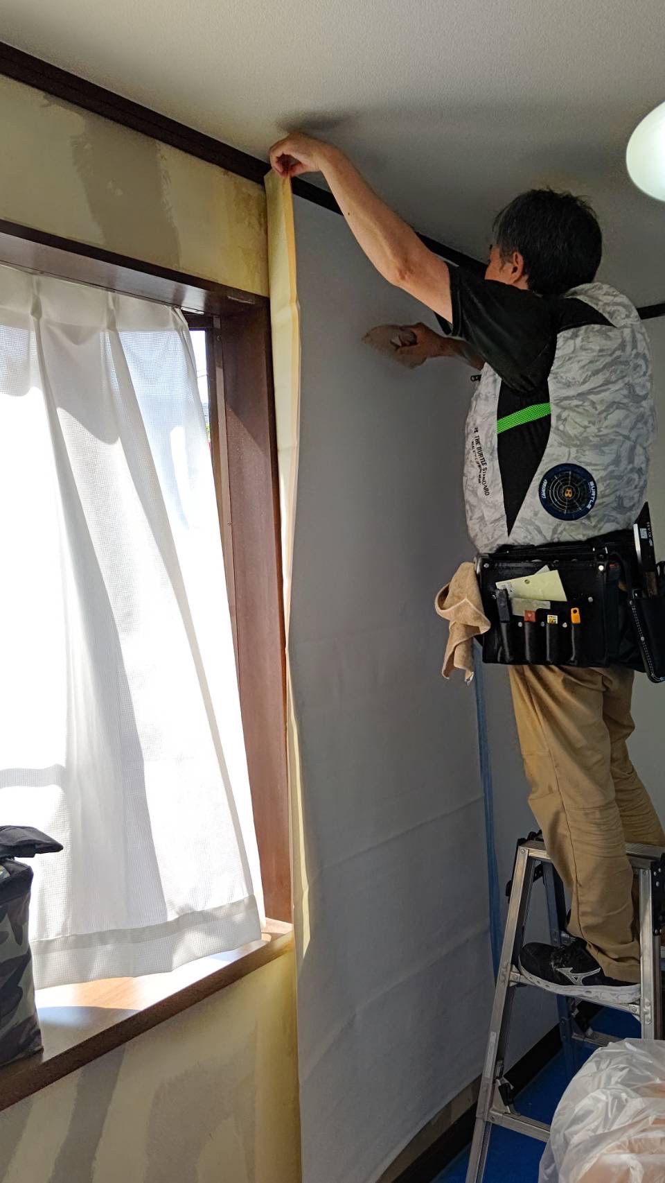 塗布剤が乾いたらいよいよクロスを貼っていきます♪
