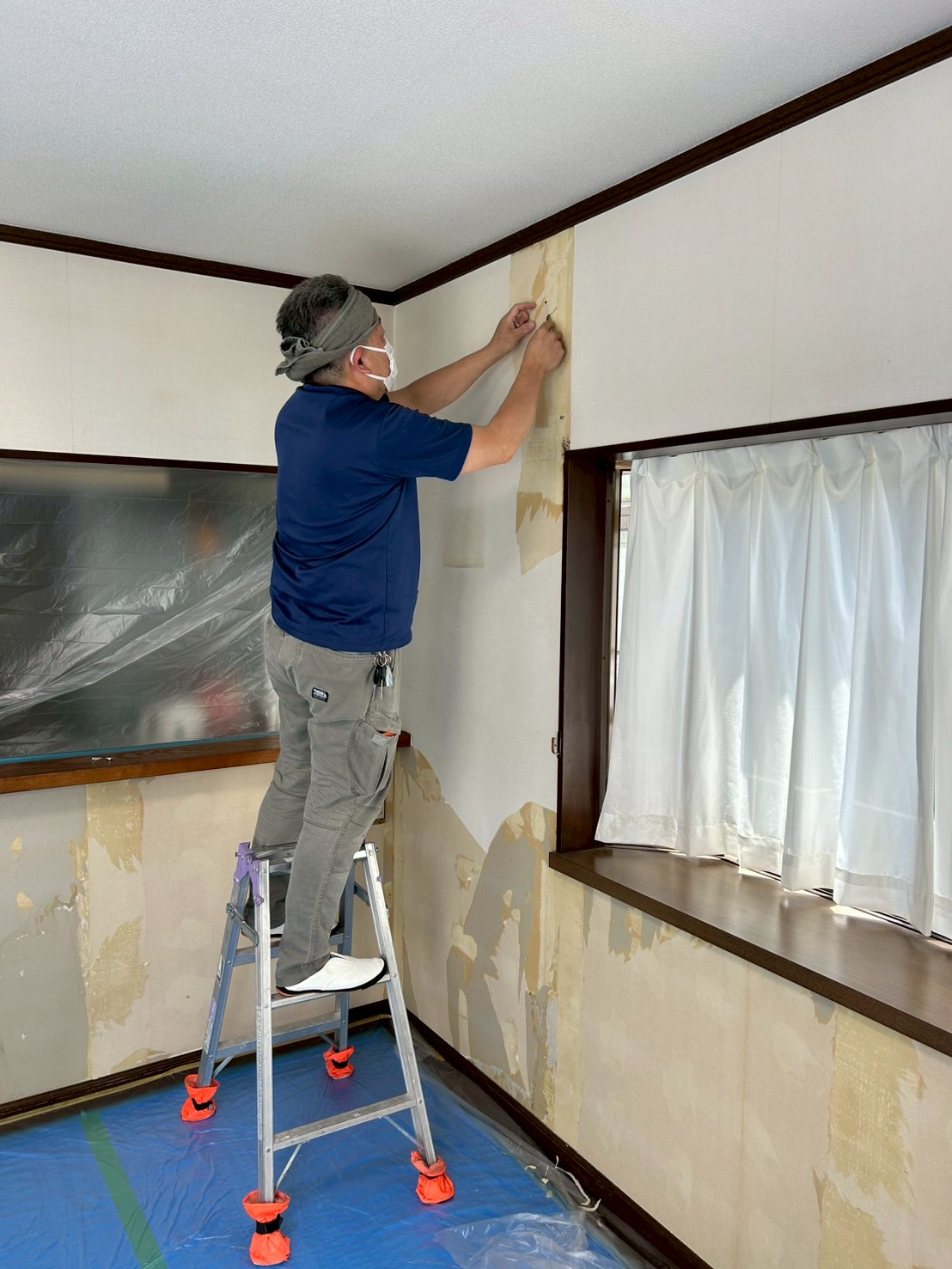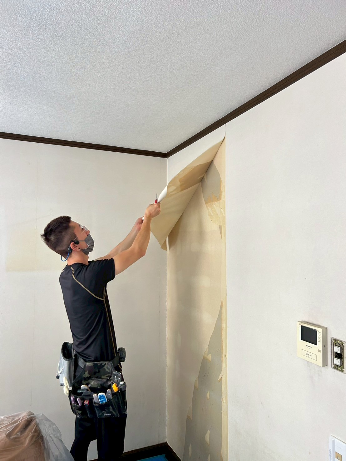 既存のクロスを丁寧に剥がしていきます。